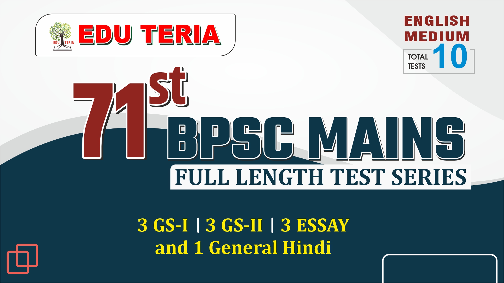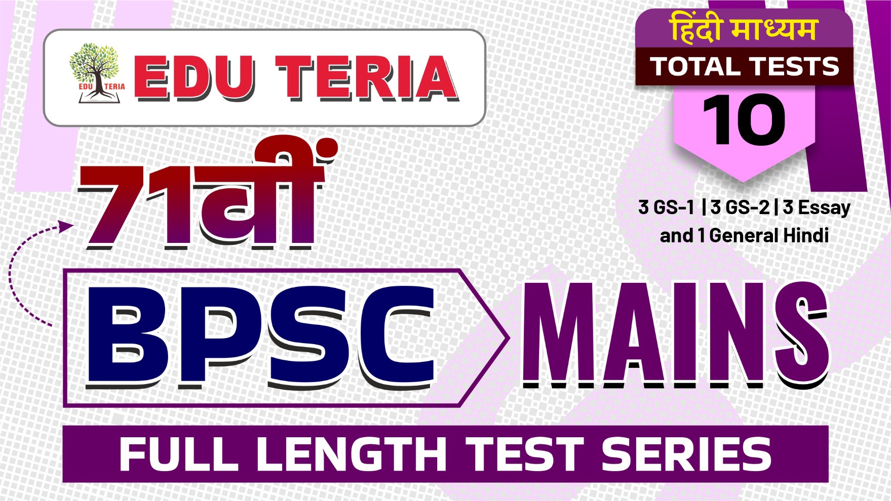 One of the flagship programs of EDU TERIA, the all India Prelims and Main test series is taken by thousands as a stepping stone to crack BPSC,UPSC,UPPCS,and all other examinations.The Post test analysis helps aspirants identify their areas of strenght & improvements and help them improve theor Prelims and Mains Score. The Test series from EDU TERIA has become an indispensable tool for every serious aspirants.