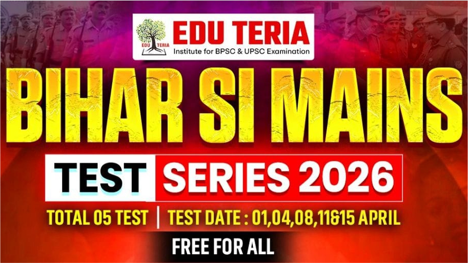 छात्र के सर्वोत्तम अभ्यास के लिए EDU TERIA लगातार नि:शुल्क मॉक टेस्ट, क्यूज आयोजित करती है, ताकि प्रत्येक छात्र BPSC, UPSC, UPPCS, SSC, BSSC CGL एवं अन्य सभी प्रतियोगिता परीक्षा के लिए अभ्यास कर सकें।